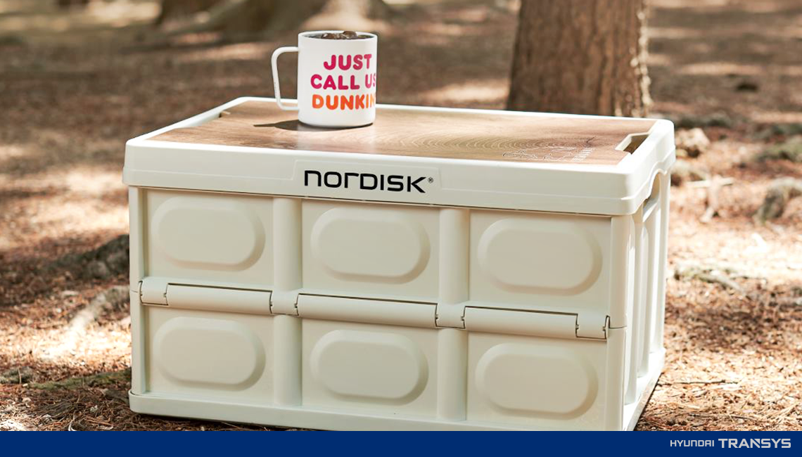 norDISK와 DUNKIN 도너츠가 협업해 선보인 한정판 굿즈 캠핑 폴딩박스를 구매하기 위해 새벽 4시부터 줄을 서는 풍경이 벌어지기도 했습니다. 커피나 도넛을 1만 원 이상 구매하면 폴딩박스를 8,900원에 구매할 수 있는 행사였습니다. 나무 느낌의 상판과 북유럽 감성이 어우러져 차박 감성을 더해주는 아이템으로 순식간에 품절 사태를 보이기도 했죠.