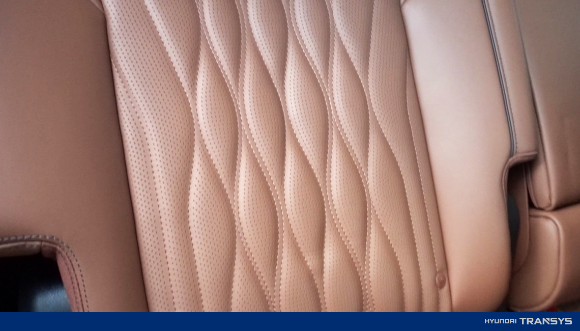운전석 시트에 앉았을 때 ‘몸을 편하게 감싸준다’는 느낌이 들었습니다. 가죽코팅이 두껍게 되어있고 탄탄했습니다. 당 차종의 디자인 업무를 수행한 현대트랜시스 시트디자인팀 담당자의 말에 따르면, ‘역동적인 우아함’을 모토로 한국의 여백의 미 강조하는 것이 가장 큰 주안점이었다고 합니다.