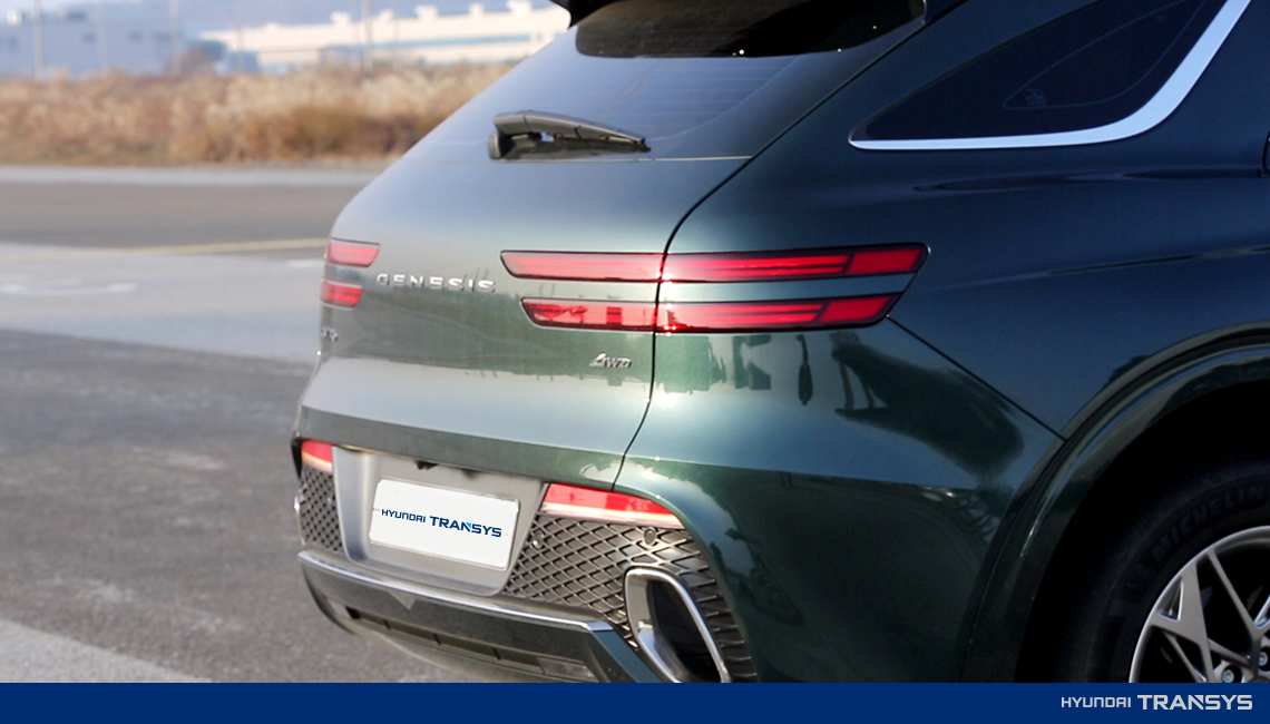 후면 디자인의 경우, 심플한 두 줄의 쿼드램프와 제네시스 영문로고(GENESIS)가 가장 눈에 들어왔습니다. D필러 옆면이 부드러운 유선형 라인으로 처리되는 부분이 특이한데, 일반적으로 포르쉐 SUV를 연상하게 합니다. 화려하고 강렬한 전면부를 뒤에서 매끈하게 마무리한다는 느낌이 들었습니다.