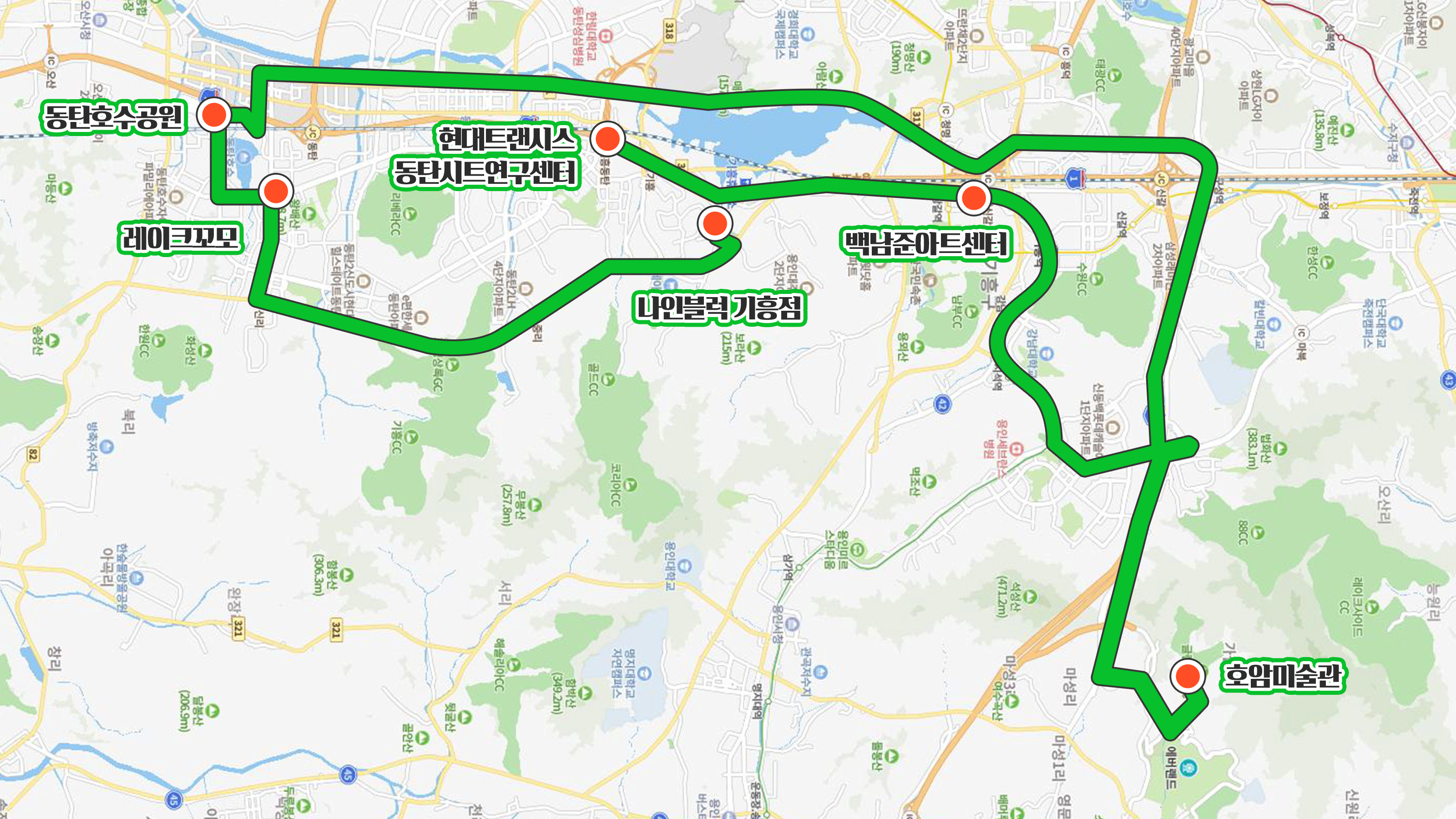 나인블럭 기흥점 > 레이크꼬모 > 동탄호수공원 > 호암미술관 > 백남준아트센터 > 현대트랜시스 동탄시트연구센터