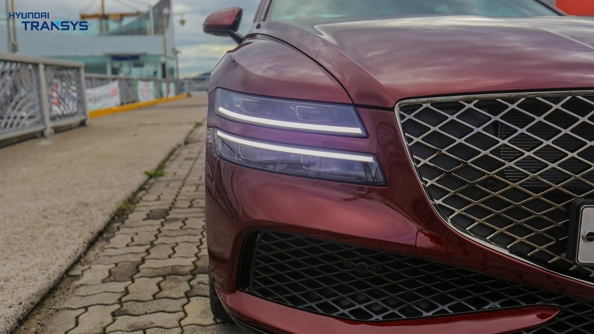 헤드램프에도 고급스러운 블랙 베젤로 마감이 되어 있어 카리스마를 느낄 수 있는데요, 크롬도금으로 더욱 시크한 느낌을 줍니다. 지매트릭스 패턴과 여전한 쿼드램프는 제네시스 아이덴티티를 잘 이어온 느낌이었습니다. 블랙 레드 컬러의 어우러짐은 전체적으로 우아함이 느껴지면서도 영한 감성이 매력적으로 다가오는 것 같습니다.