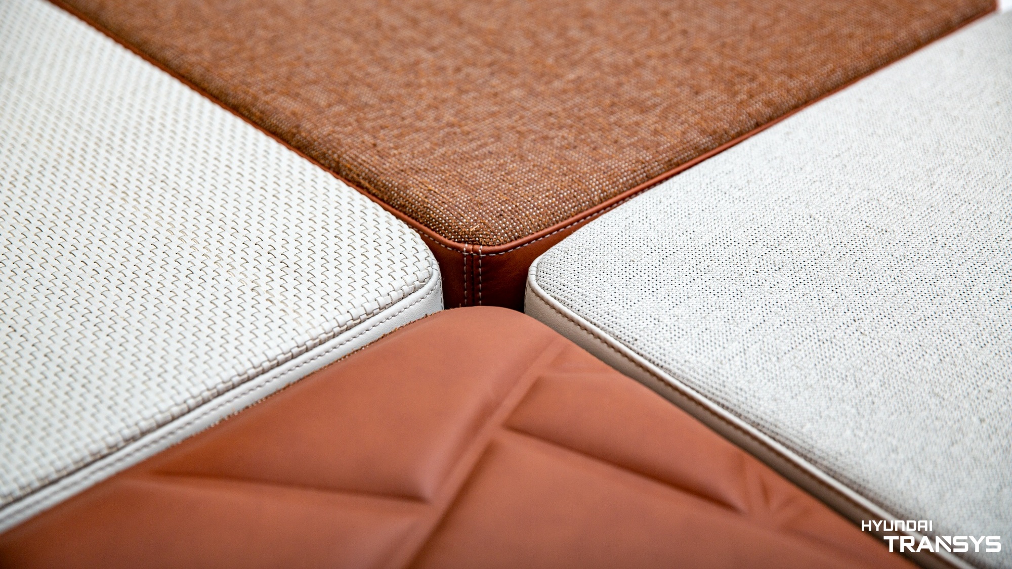 특히 지속가능한 방법으로 생산된 친환경 가죽과 폐가죽을 재활용한 재생가죽 등 다양한 친환경 소재를 적용했으며, 혁신적인 가공 기법을 통해 친환경 철학을 담은 현대트랜시스만의 신개념 모빌리티를 새롭게 정의했습니다.