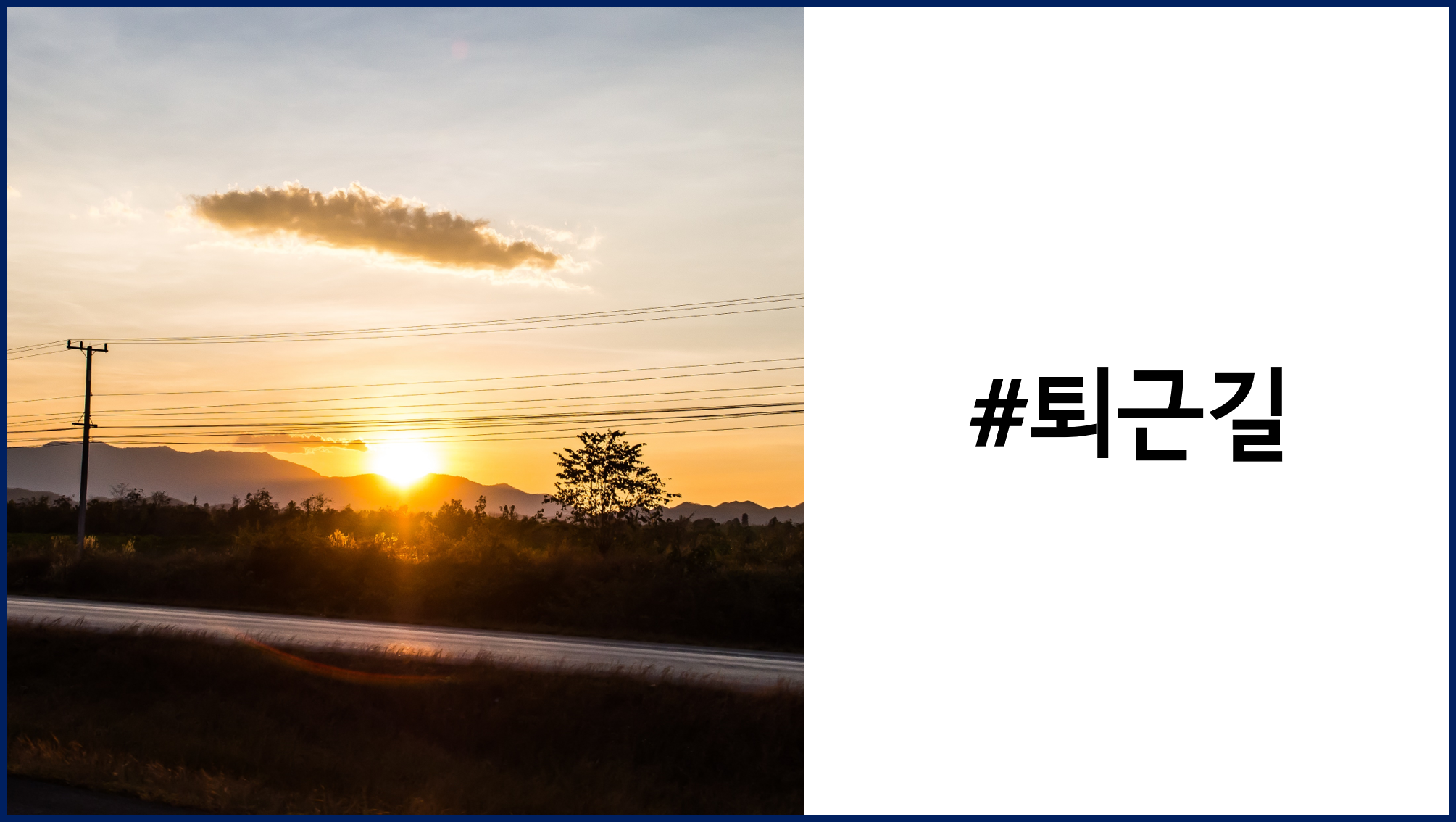 늘 같은 퇴근길이지만 조금의 여유와 변화를 즐기다 보면, 그 에너지가 퇴근 후 나에게 다시 연결되어 하루 남은 일과를 온전히 보내는 데 도움을 주는 것만 같다.