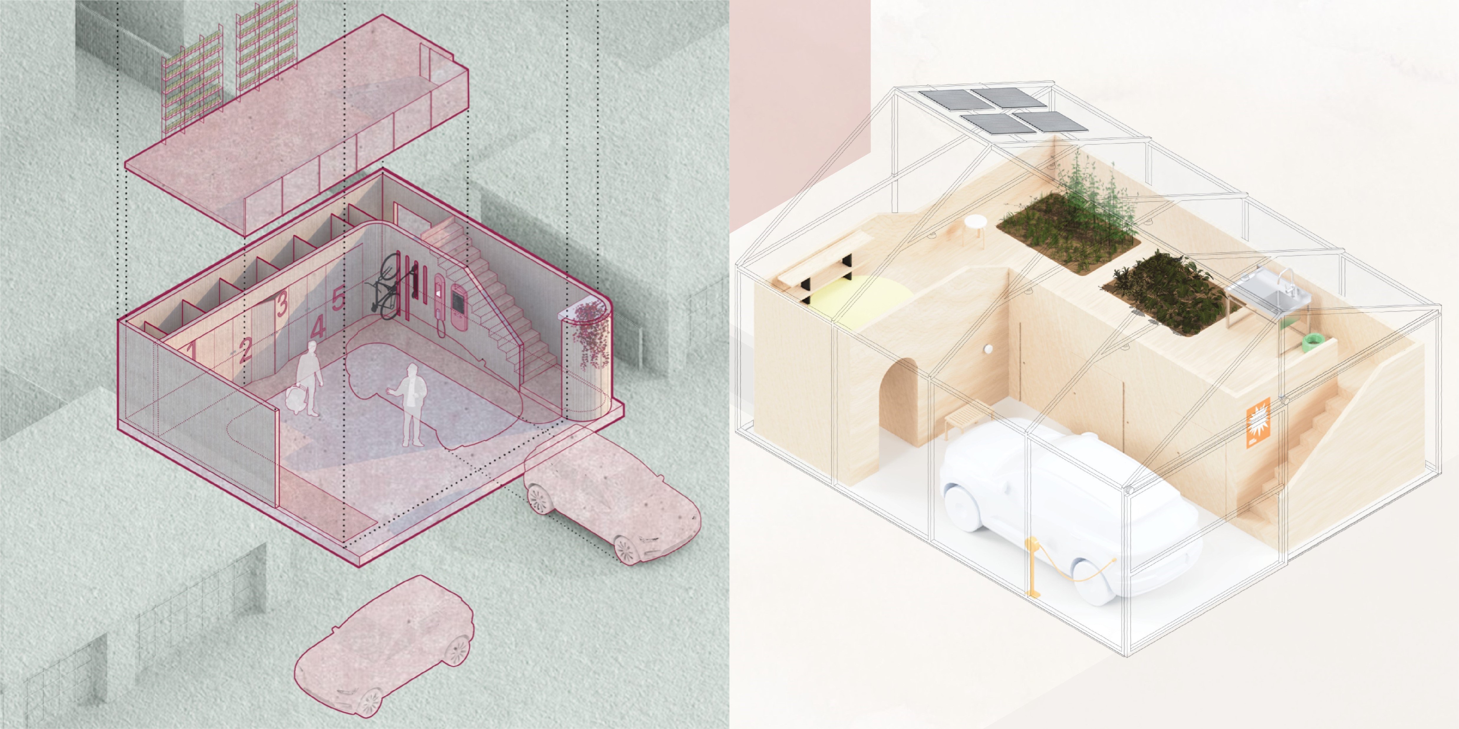 코로나 시대를 거치며 대두되고 있는 재택근무 공간에 대한 열망을 주차 공간에 모두 녹여낸 점이 흥미롭습니다.