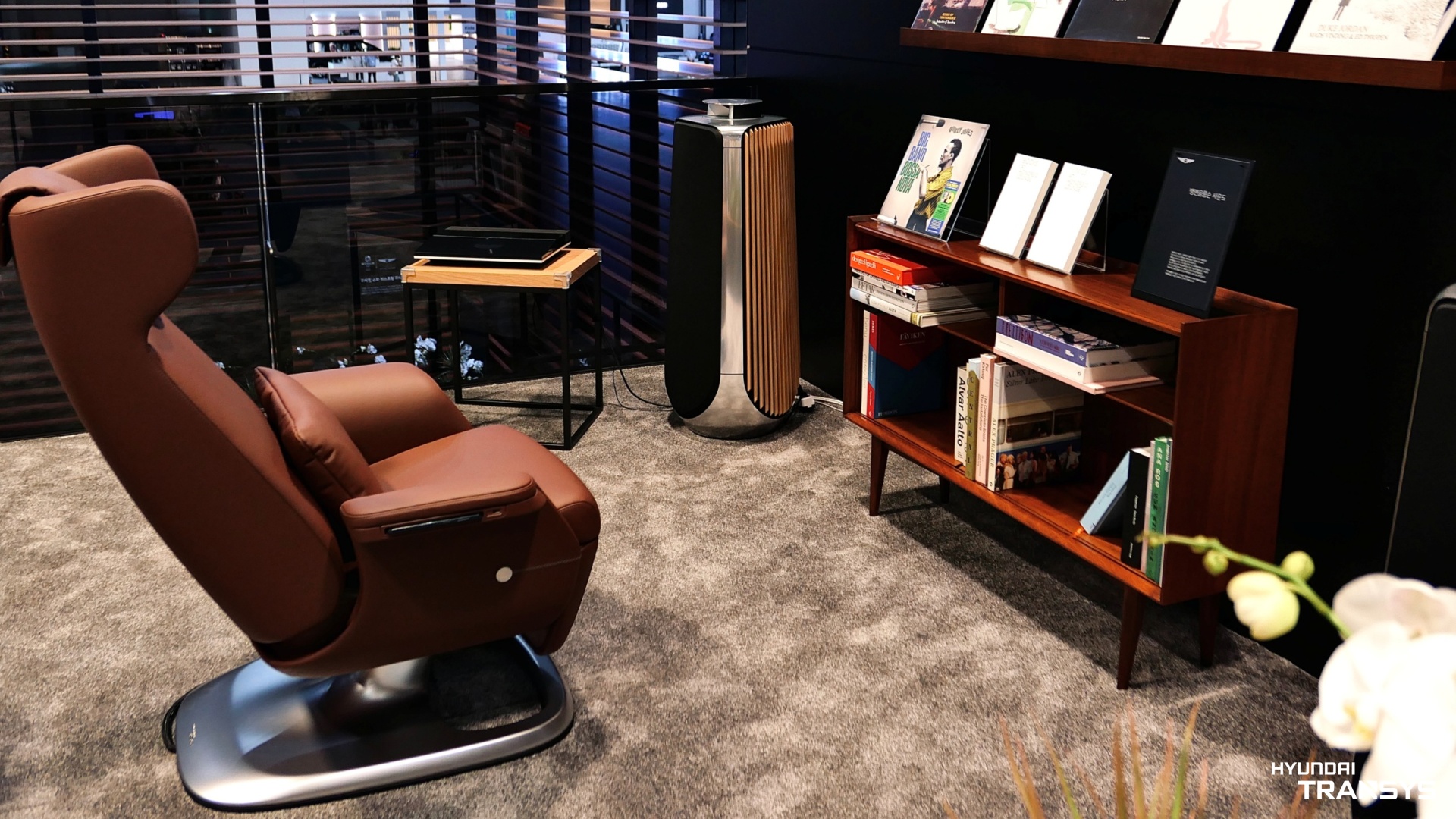 공간 한켠에 전시된 현대트랜시스의 제네시스 리클라이닝 의자를 통해서도 이러한 메시지는 자연스럽게 라이프스타일과도 연결되는 것 같습니다.