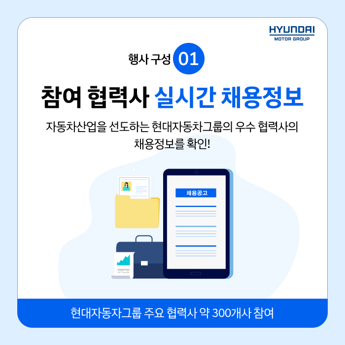 현대차그룹이 11월 1일부터 11일까지 ‘2022 현대자동차그룹 협력사 온라인 채용박람회’를 개최합니다.