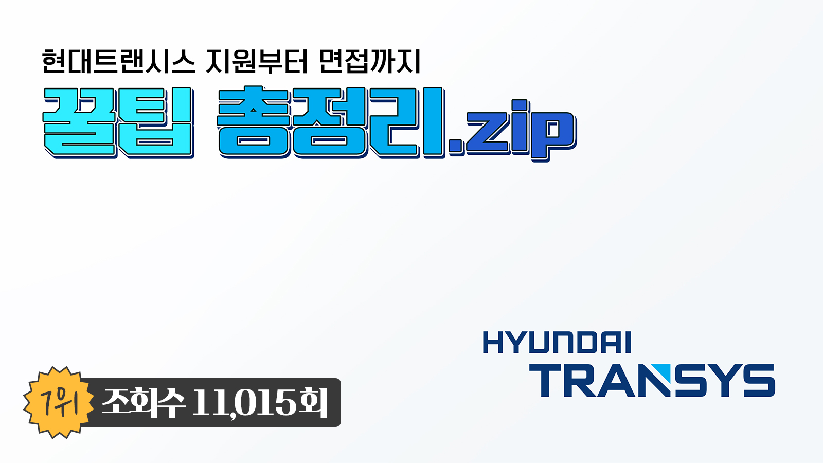 취업 준비생 시절을 돌아보면 이 회사는 어떤 인재를 선호하는지, 면접 준비는 어떻게 하는 것이 효과적인지 고민이 많았습니다. 7위는 전략지원팀에서 근무하는 심은수 매니저의 <현대트랜시스 지원부터 면접까지 꿀팁 총정리.zip>입니다.