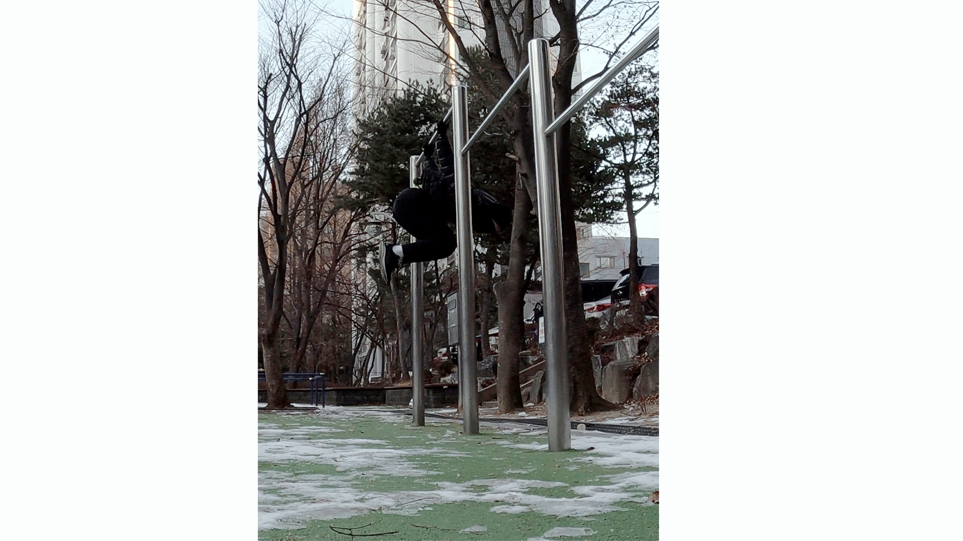 집에서도 가능하다는 타이틀을 갖고 있지만 최근 이사 온 집에 철봉 설치가 어려워 정작 저는 밖에서 촬영할 수밖에 없었는데요. 그렇지만 철봉과 평행봉 그리고 내 몸만 있으면 중량물 없이도 충분히 평균 이상의 몸을 만들 수 있으니 한 번 참고해 보시기 바랍니다.