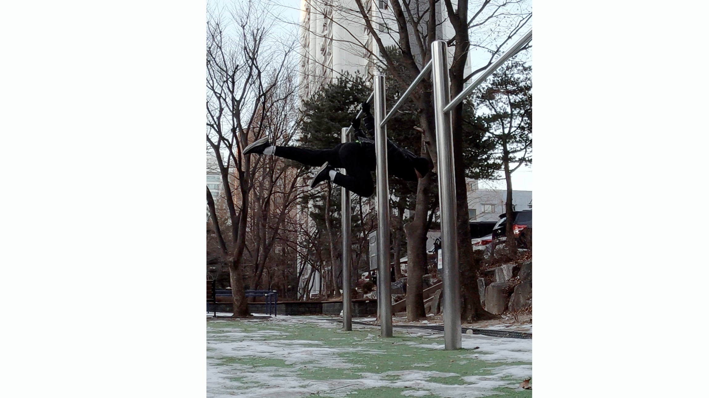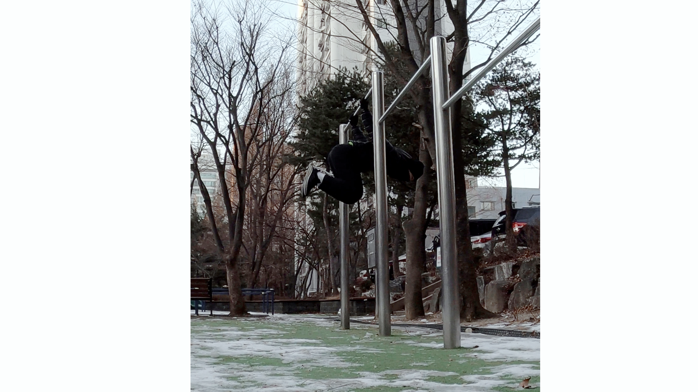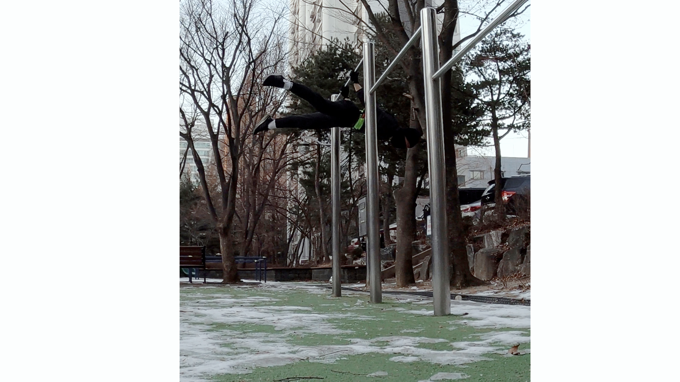 2. 철봉에 매달려서 몸을 뒤집는 과정에서 상의가 벗겨질 수 있으니 상의는 살짝 타이트하게 입어주세요.