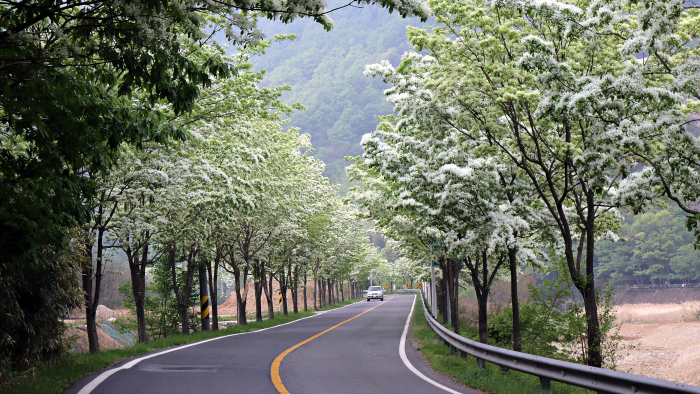 또한 밀양 단장면 아불 삼거리에서 밀양담으로 이어지는 1051번 지방도로에서는 이팝나무 터널길을 만나볼 수 있는데요. 양쪽으로 이팝나무가 길게 늘어서 꽃이 만개하면 마치 설원을 보는 듯한 기분을 만끽할 수 있습니다.