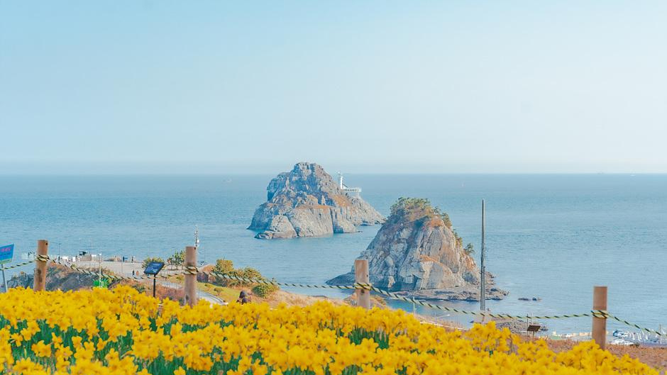 부산 오륙도 해맞이 공원에서는 매년 봄 샛노랗게 활짝 핀 노란 수선화를 만나볼 수 있는데요. 오륙도의 기암 풍경을 배경으로 바람에 흩날리는 수선화 사진을 찍을 수 있어 ‘인생사진’ 명소로 유명합니다. 또한 오륙도 스카이워크에서는 몽환적인 해안가 풍경과 방패섬, 솔섬, 수리섬 등 오륙도를 구성하고 있는 섬들도 만나볼 수 있습니다.