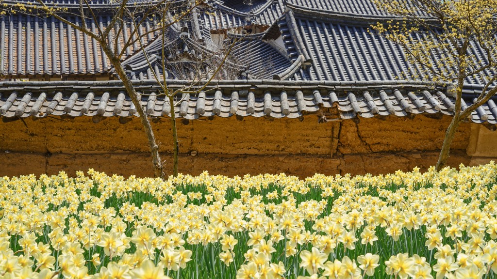 서산에 위치한 유기방가옥은 백 년 고택의 고즈넉한 분위기 속 청초한 매력의 수선화가 잘 어우러진 수선화 명소인데요. 고택과 꽃밭은 구분하는 U자형의 토담 뒤로 노란 물결의 장관이 펼쳐집니다. 실제로 가옥에서 숙박도 가능하니 전통 민속놀이 체험, 한복 체험, 농경문화 체험 등 다채로운 봄 나들이를 경험해보세요.