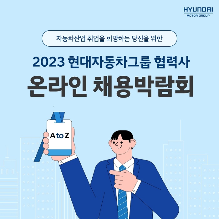 현대자동차그룹이 11월 1일(수)부터 11월 14일(화)까지 ‘2023 현대자동차그룹 협력사 온라인 채용 박람회’를 개최합니다.