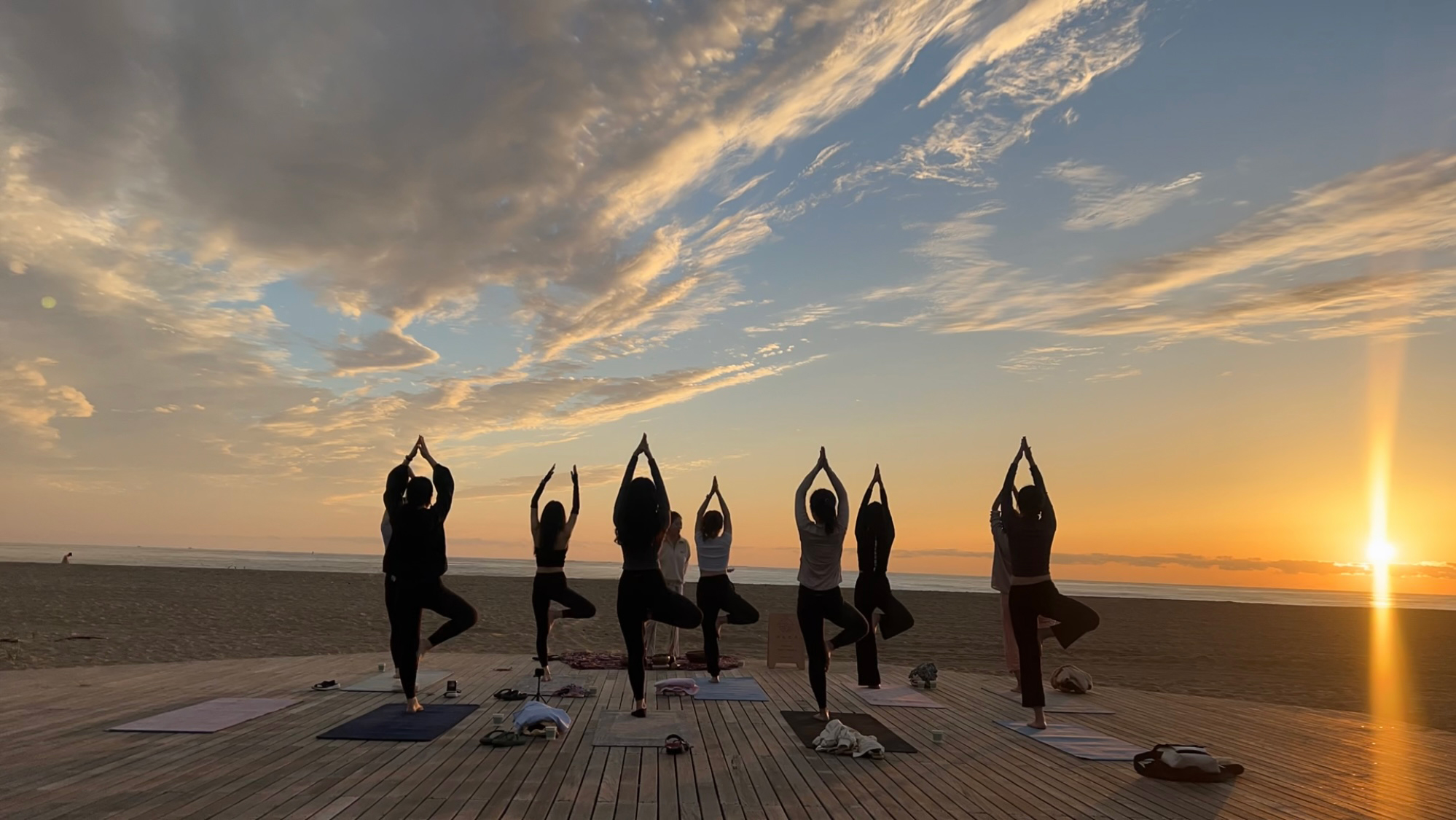 재밌게 요가를 즐기다 보니, 깜깜했던 하늘이 연보라색으로 변하더니 점점 밝아지며 어느새 해가 떠오르기 시작했는데요. 적막한 새벽에 공간을 채우는 파도 소리, 살을 스치며 지나가는 바람, 따뜻한 햇살까지 너무나 기억에 남는 경험이었습니다.