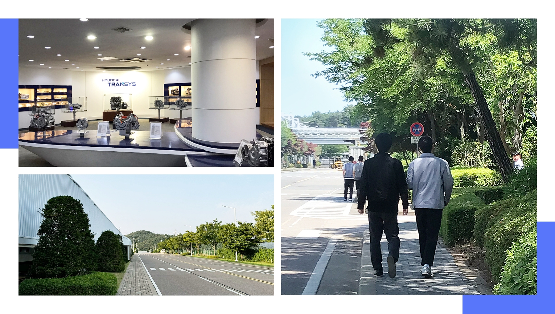 현대트랜시스 국내 사업장은 동탄 본사를 비롯해 화성(남양), 판교, 서산(지곡, 성연)에 위치하고 있습니다. 현대트랜시스라는 같은 목표를 위해 일하지만, 연구, 영업, 생산 등 각 사업장이 가진 고유의 특성 때문에 업무도 일상 풍경도 조금씩 다른데요. 과연 현대트랜시스 버전의 직장인 하루 일과는 어떤 모습일까요? 현대트랜시스 동탄, 서산, 판교에서 근무하는 세 명의 임직원이 각자의 워크플레이스를 소개했습니다. 회사 정원의 히든 플레이스부터 사내 카페의 달콤한 휴식, 판교 현대백화점과 함께하는 색다른 일상까지. 사업장별 특성을 알 수 있는 다양한 출근 루틴과 특별한 점심시간 풍경도 지금 바로 만나봅니다.