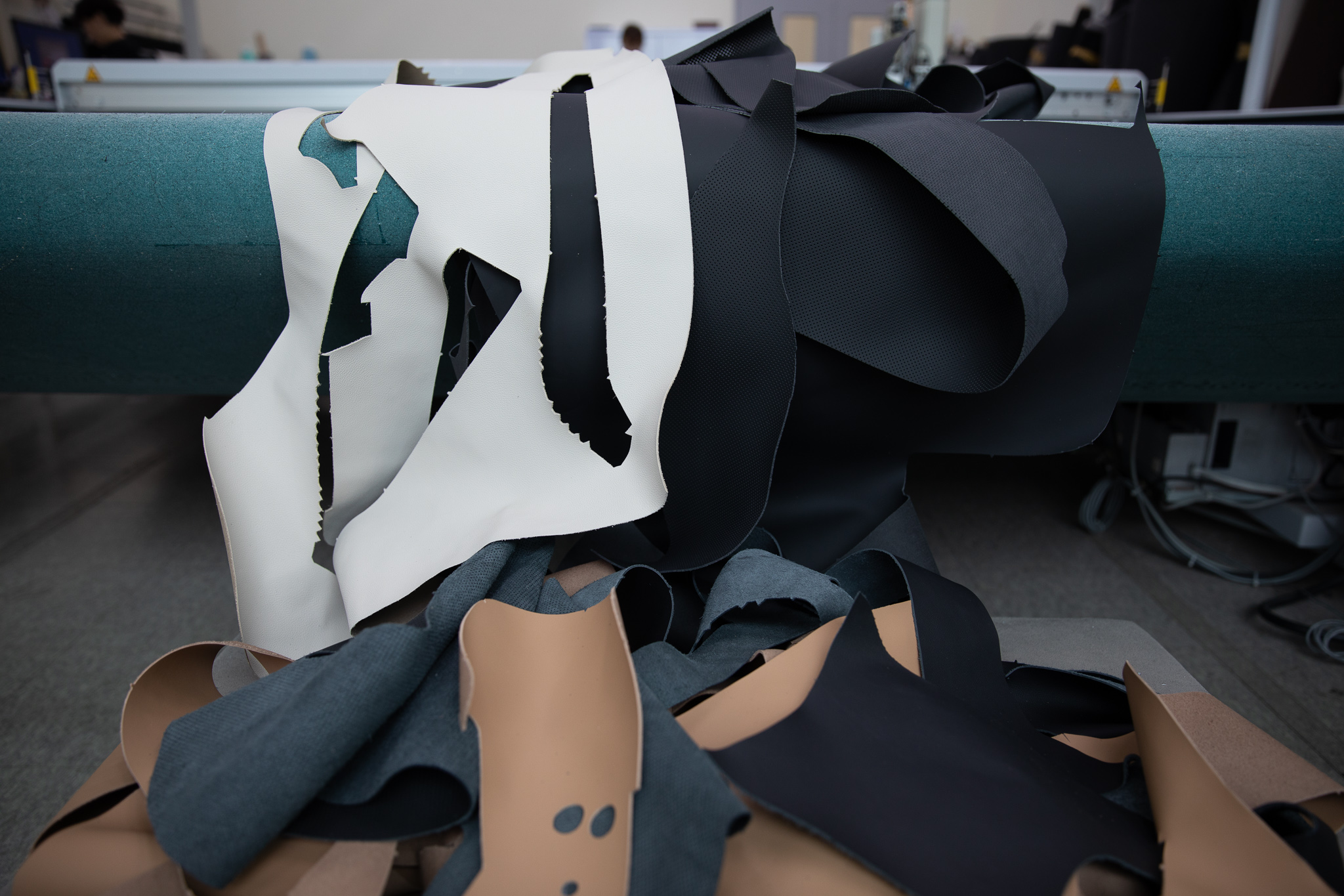 하지만 인체와 같이 곡선으로 이루어진 시트를 만들기 위해서는, 소재 재단 과정에서 자투리 가죽이 발생할 수밖에 없습니다. 현대트랜시스는 시트 연구개발 과정 중 버려지는 자원을 새로운 가치로 탈바꿈하기 위해 고민 끝에 자투리 가죽 업사이클링 굿즈를 제작하고 있습니다.