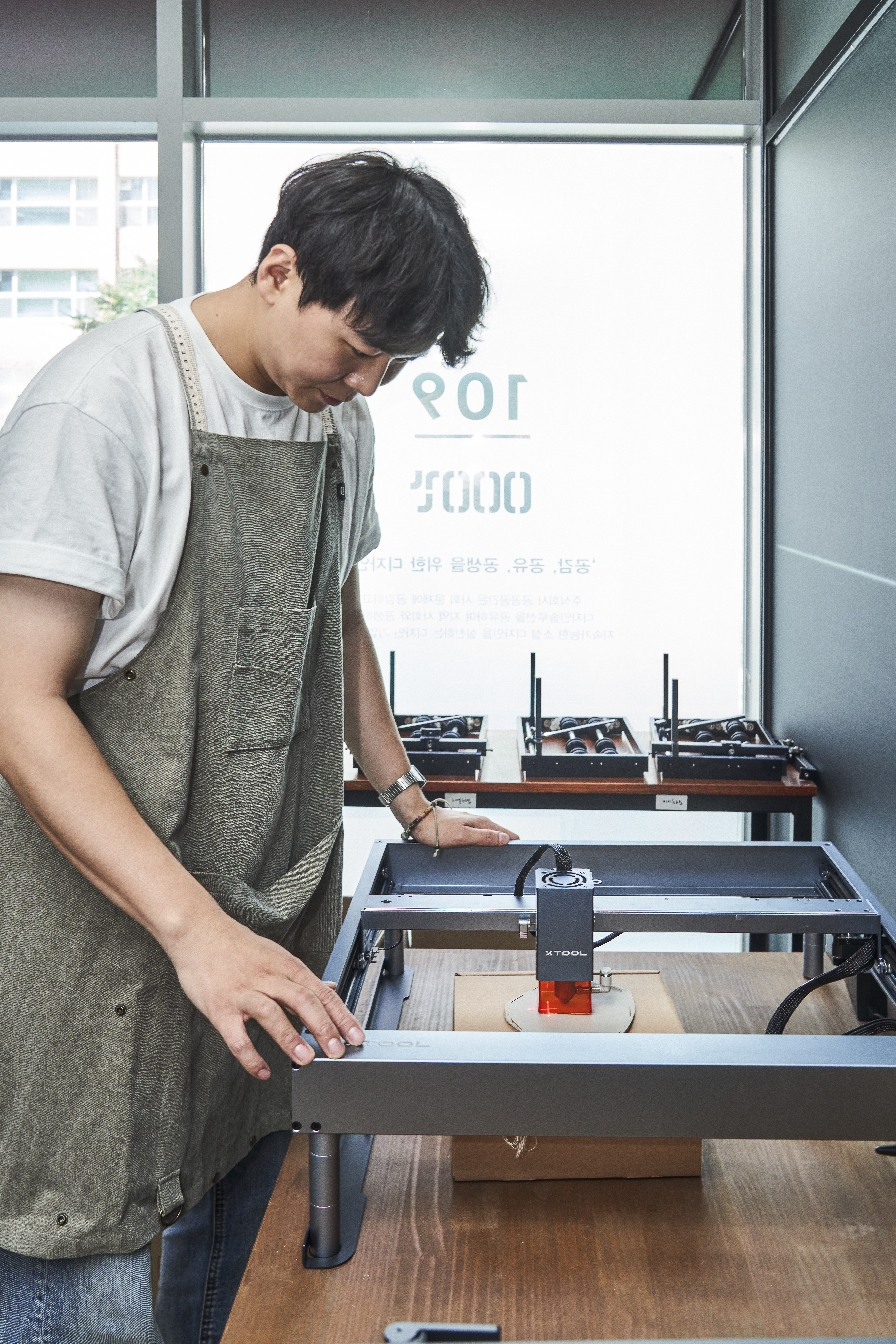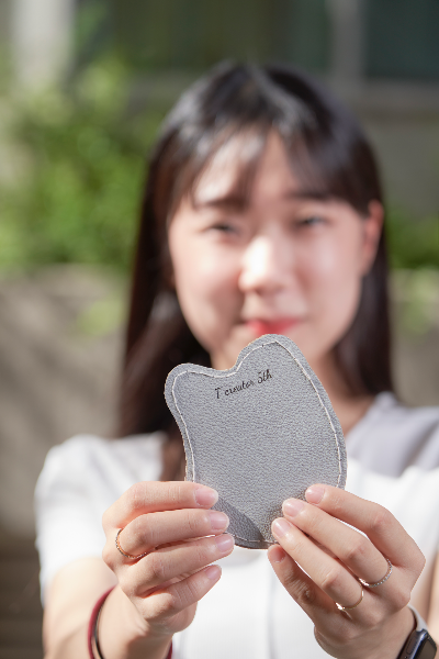 그리고 마지막 단계인 각인 작업이 시작됐습니다. 다들 긴 시간 바느질을 하며 각자의 제품에 새길 문구를 고민했는데요. 저마다의 개성을 담은 레이저 각인까지 완료하고 나니 마침내 특별한 세 개의 업사이클링 가죽 컵 받침이 완성됐습니다.