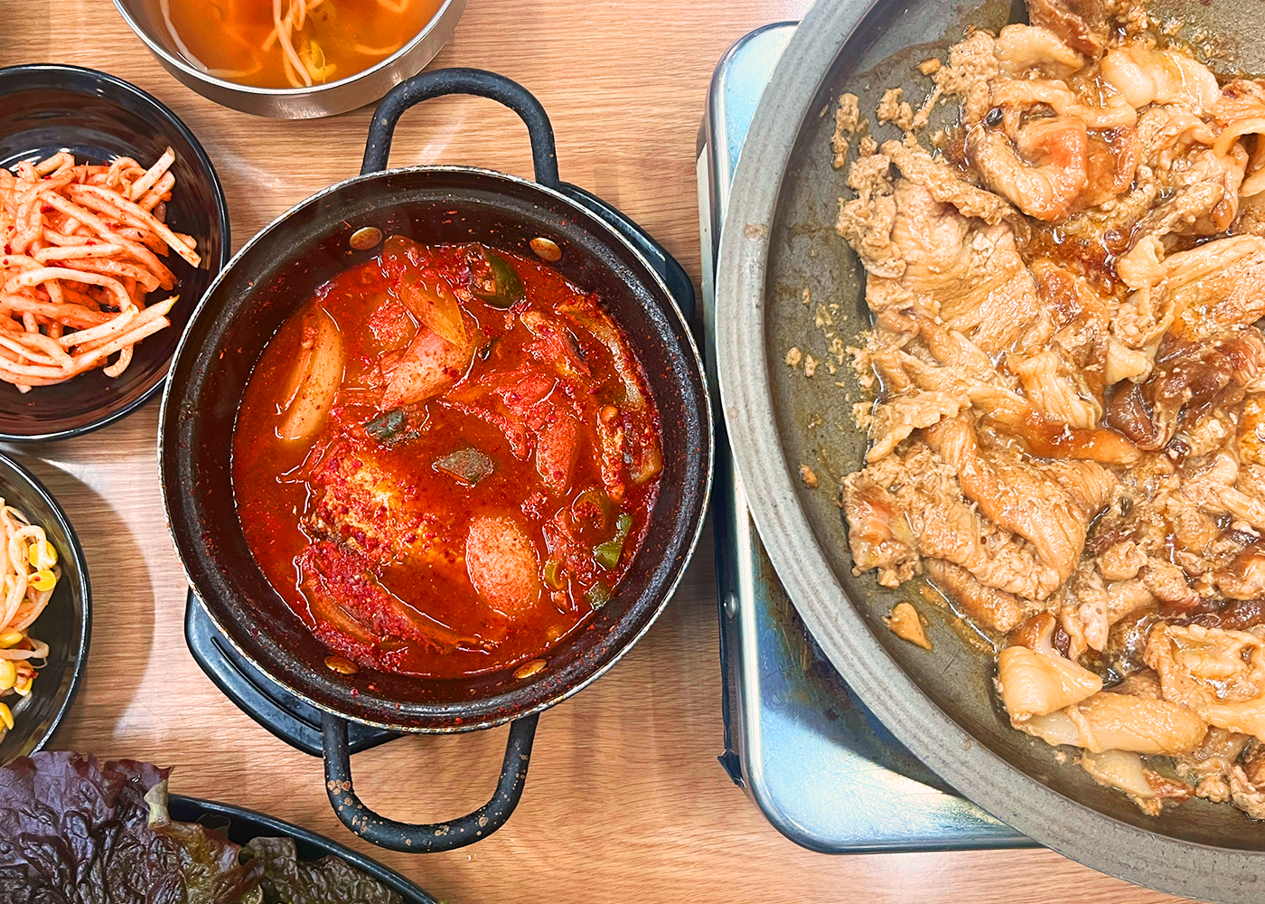 여기서 흥미로운 질문 한 가지. 왜 기사식당은 ‘불백’이 주 메뉴인 가게가 많을까. 불백은 매운 맛의 제육볶음과 달리 간장 양념의 돼지고기를 구워 먹는 형태다. 이는 기사들의 요구에 의한 것이었다. 당시 기사들은 구매력이 있었고, 그들의 요구에 맞춰 고기를 1인분씩 제공한 것이 바로 오늘에 이른 것이다. 고기는 보통 2인분 이상이어야 하는 오랜 불문율을 기사식당이 깨버린 것이다. 수입 소고기가 아직 대량으로 들어오기 전이라 가격이 비쌌으므로 불백은 당연히 돼지고기이기도 했다.