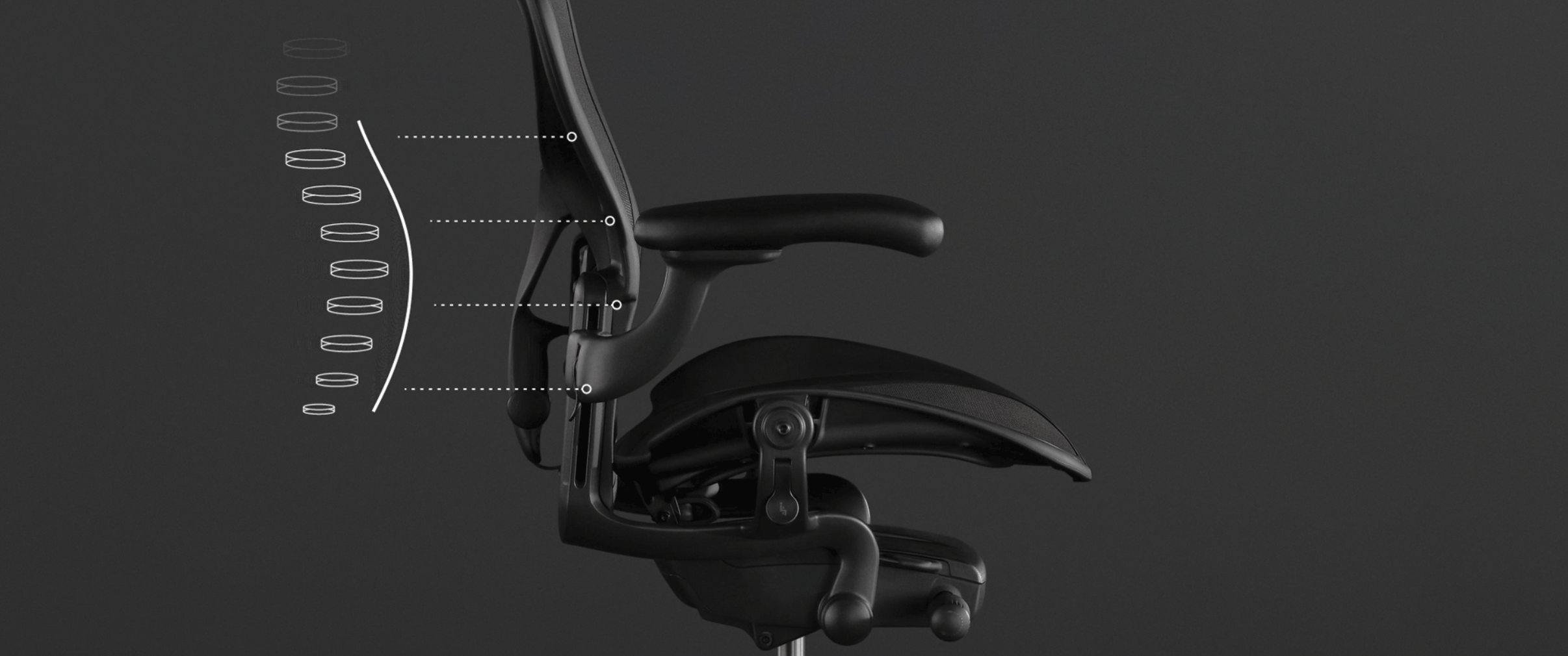 또 다른 의미의 편안한 의자는 사무용 의자 ‘에어론’에서 찾아볼 수 있다. 사무는 현대의 보편적 작업으로서 많은 사람이 오랜 시간 의자에 앉아 있을 수밖에 없도록 만든다. 좋은 사무 환경 조성이 일의 효율을 올리는 데에도 영향을 준다는 연구 결과가 밝혀진 후, 사무의 핵심인 의자를 잘 만드는 일 또한 매우 중요해졌다. 에어론은 척추가 자연스러운 형태를 유지하도록 해주고, 틸팅 시스템을 통해 부드럽게 등을 기대면서도 발은 바닥에 닿아 안정성을 보장한다. 신체에 맞춰 의자 높이, 팔걸이 위치, 기울기 강도 등을 조절할 수 있으며 쿠션이나 천 대신 팽팽한 통기성 소재를 사용하여 장시간 앉아도 몸에 땀이 차지 않도록 배려했다. 이는 모두 인간공학적 검토를 거친 것으로, 상대적으로 비싼 가격에도 불구하고 직장인들의 워너비로 자리잡았다.