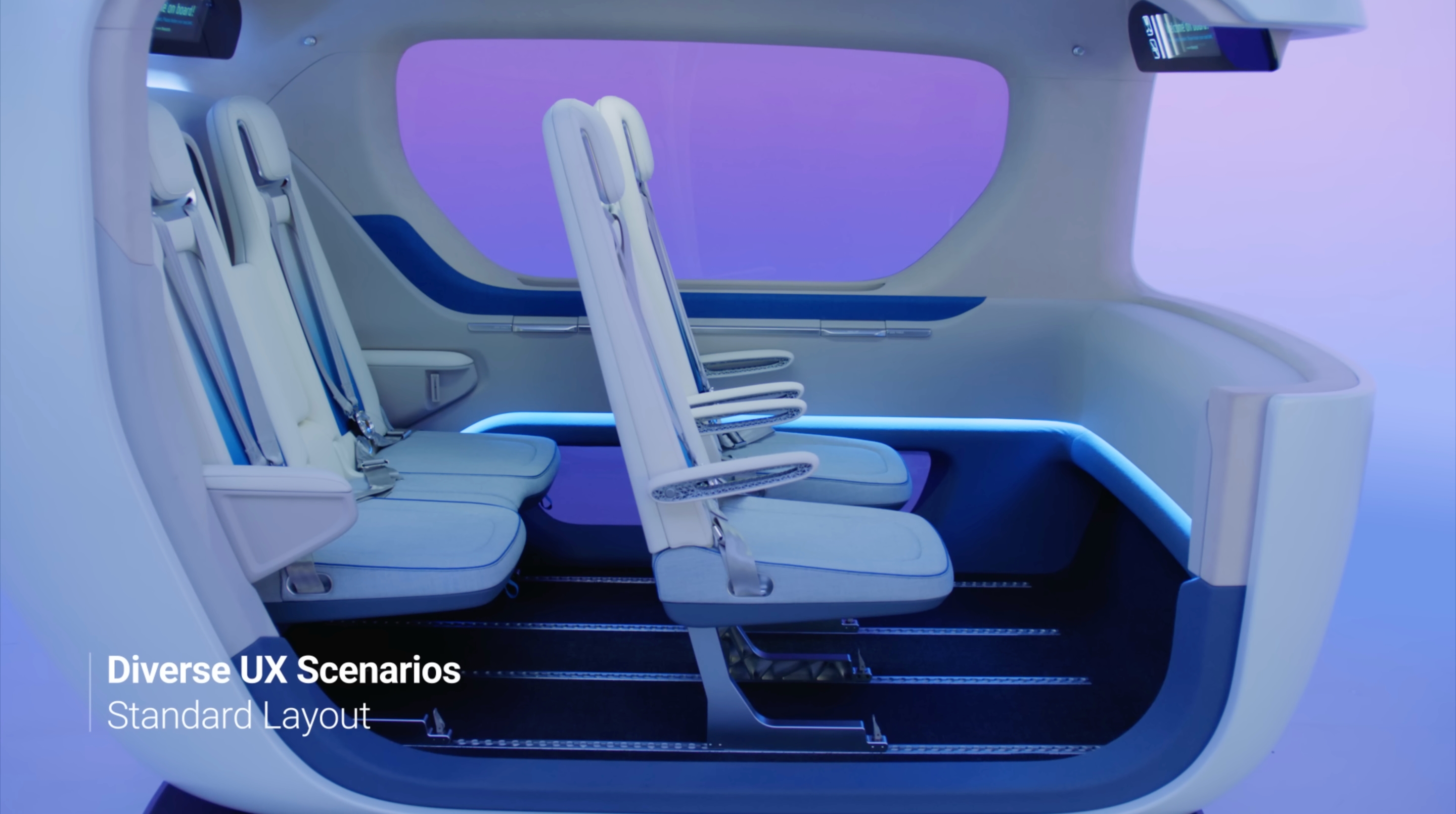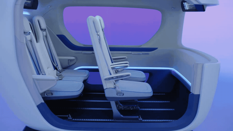 현대트랜시스는 UAM을 이용하는 승객들에게 특별한 이동경험을 제공하기 위해 사람과 교감하는 디자인을 적용했습니다. 이동 중에도 다양한 정보를 제공하는 스마트 글라스, 개인의 취향이나 기분에 따라 다양한 무드를 연출할 수 있는 앰비언트 조명 등 승객의 감성을 충족시키기 위한 세심한 배려와 디테일이 돋보입니다.