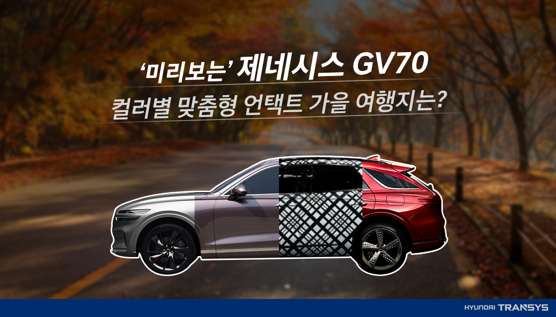 여러분이 가장 가보고 싶은 드라이브 장소는 어디인가요? 만약 그 장소를 제네시스 GV70과 함께한다면 어떤 컬러와 함께 출발하고 싶나요? 외부 디자인 뿐만 아니라 실내 곳곳 디테일한 인테리어로 주목받은 이번 제네시스 GV70의 시트에는 현대트랜시스의 첨단 자율주행 기술들이 적용되었습니다. 곧 출시를 앞둔 GV70을 통해 이 모든 사항들을 확인해 보세요.