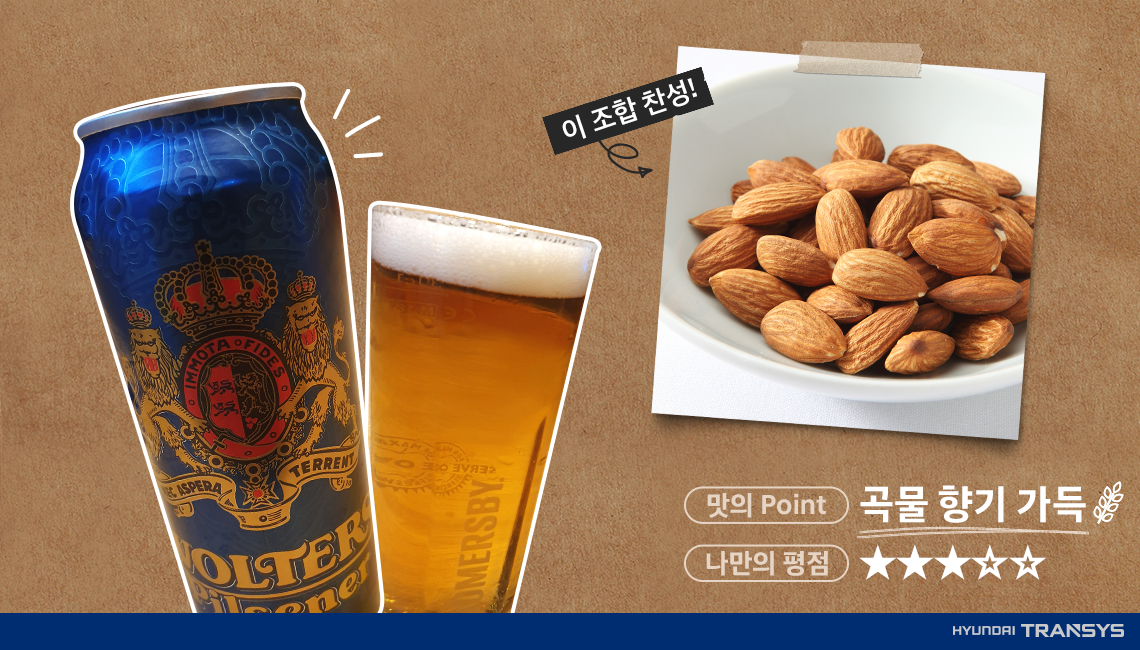 최근 코로나19 이슈로 인해 혼자 즐길 수 있는 취미생활이 주목받고 있습니다. 많은 분이 혼밥(혼자 밥 먹기), 혼영(혼자 영화 보기), 혼술(혼자 술 마시기)을 통해 시간을 보내고 계실 텐데요. 여러분들은 혼자 시간을 보내고 싶을 때 주로 무엇을 하시나요? 저는 보통 혼술을 하고는 합니다. 현대트랜시스에서 일을 마치고 집에서 시원한 맥주를 한 모금을 마실 때면 하루 묵은 피로가 싹 내려가는 느낌이죠. 술은 기쁜 일과 함께, 슬픈 일과 함께, 이제는 현대인들의 동반자입니다. 다양한 술 종류 중 오늘은 퇴근 후 가볍게 마시기 좋은 맥주를 소개해드리려고 합니다. 그럼 프로 혼술러가 추천하는 ‘술’기로운 직장생활! 함께 확인해보세요.